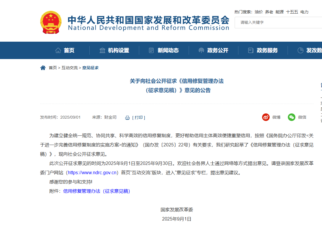 重磅!国家发改委就《信用修复管理办法(征求意见稿)》公开征求意见